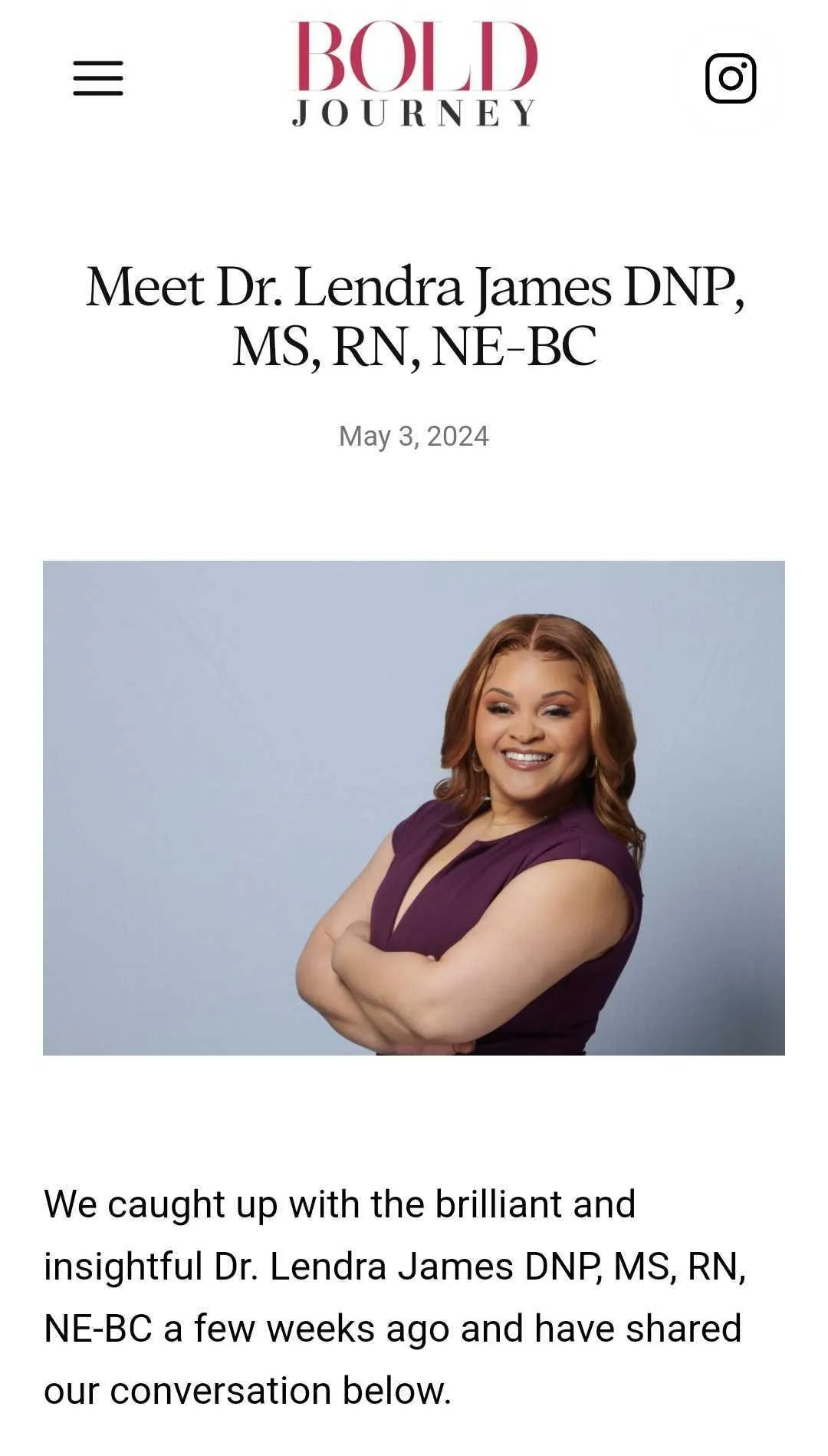 Dr. Lendra James, DNP, MS, RN, NE-BC, is a nurse turned entrepreneur, speaker, and business strategist who helps nurse leaders and organizations transform the future of leadership.